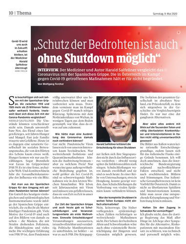 interview. Der Mediziner und Autor Harald Salfellner vergleicht das Coronavirus mit der Spanischen Grippe. Die in Österreich im Kampf gegen Covid-19 getroffenen Maßnahmen hält er für nicht begründet. Von Wolfgang Fercher
