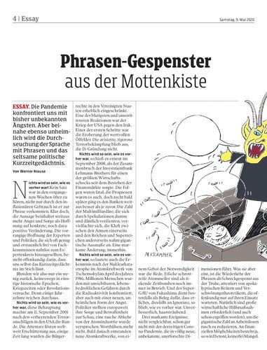ESSAY. Die Pandemie konfrontiert uns mit bisher unbekannten Ängsten. Aber beinahe ebenso unheimlich wird die Durchseuchung der Sprache mit Phrasen und das seltsame politische Kurzzeitgedächtnis. Von Werner Krause
