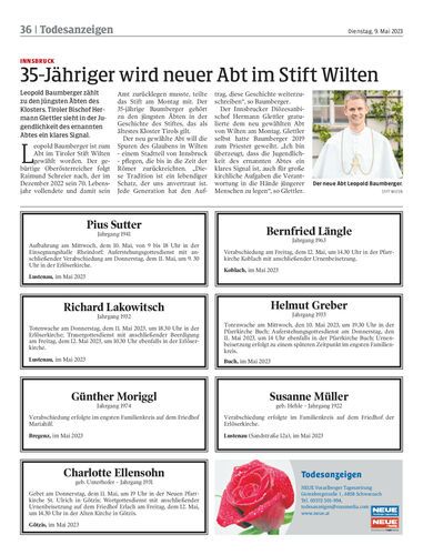 Leopold Baumberger zählt zu den jüngsten Äbten des Klosters. Tiroler Bischof Hermann Glettler sieht in der Jugendlichkeit des ernannten Abtes ein klares Signal.