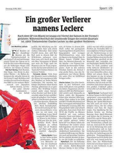 Nach dem GP von Miami ist knapp ein Viertel der Saison in der Formel 1 gefahren. Während Red Bull der strahlende Sieger des ersten Quartals ist, zählt Titelanwärter Charles Leclerc zu den großen Verlierern.