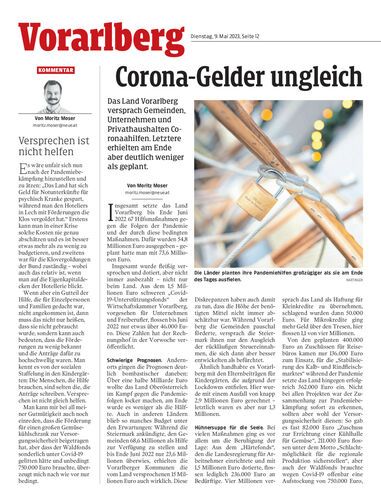Das Land Vorarlberg versprach Gemeinden, Unternehmen und Privathaushalten Coronaahilfen. Letztere erhielten am Ende aber deutlich weniger als geplant.