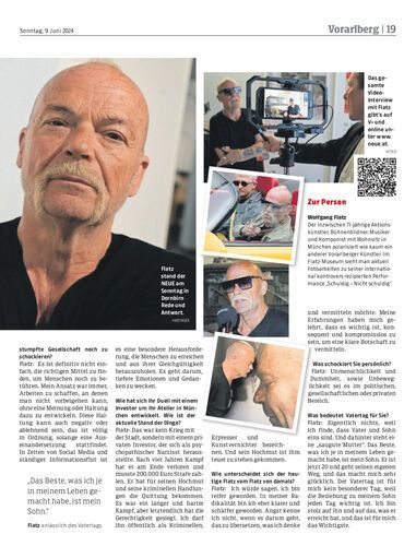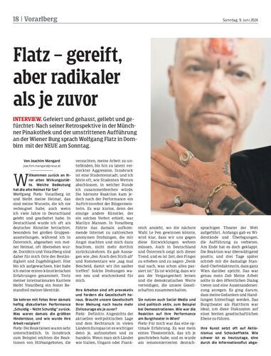 Interview. Gefeiert und gehasst, geliebt und gefürchtet: Nach seiner Retrospektive in der Münchner Pinakothek und der umstrittenen Aufführung an der Wiener Burg sprach Wolfgang Flatz in Dornbirn mit der NEUE am Sonntag.