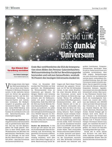 Ende Mai veröffentlichte die ESA die Interpretation eines Bildes des Perseus-Galaxienhaufens. Weltraumteleskop Euclid hat Bewährungsprobe bestanden und soll nun herausfinden, weshalb 95 Prozent des heutigen Universums dunkel ist.