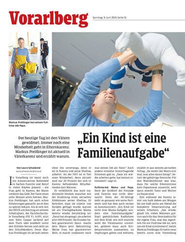Der heutige Tag ist den Vätern gewidmet. Immer noch eine Minderheit geht in Elternkarenz. Markus Preißinger ist aktuell in Väterkarenz und erzählt warum.