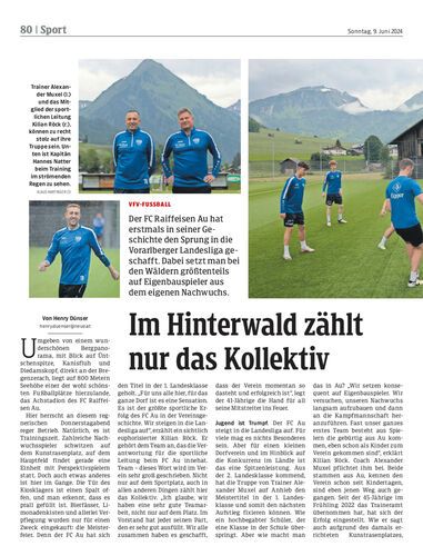 Der FC Raiffeisen Au hat erstmals in seiner Geschichte den Sprung in die Vorarlberger Landesliga geschafft. Dabei setzt man bei den Wäldern größtenteils auf Eigenbauspieler aus dem eigenen Nachwuchs.