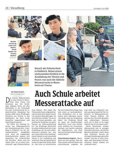 Besuch der Polizeischule in Feldkirch. Neben einem umfassenden Einblick in die Ausbildung mit Theorie und Praxis war auch die tödliche Messerattacke in Mannheim ein Thema.