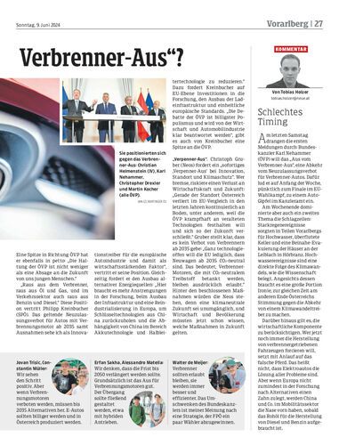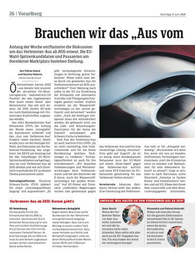 Anfang der Woche entflammte die Diskussion um das Verbrenner-Aus ab 2035 erneut. Die EU-Wahl-Spitzenkandidaten und Passanten am Dornbirner Marktplatz beziehen Stellung.