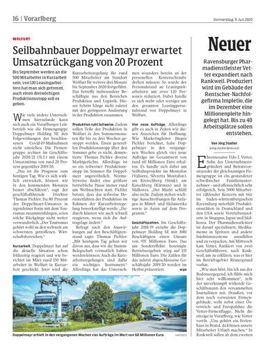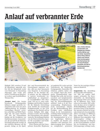 Ravensburger Pharmadienstleister Vetter expandiert nach Rankweil. Produziert wird im Gebäude der Rentscher-Nachfolgefirma Impletio, die im Dezember eine Millionenpleite hingelegt hat. Bis zu 40 Arbeitsplätze sollen entstehen.