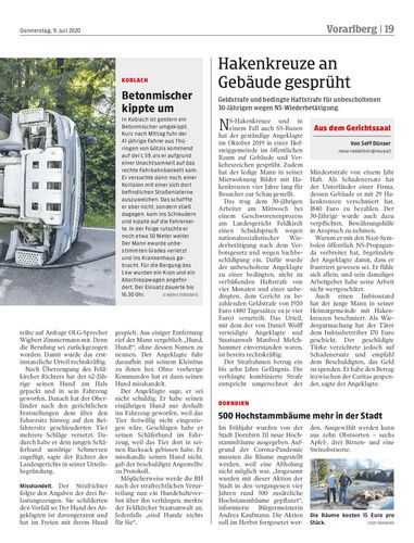 Geldstrafe und bedingte Haftstrafe für unbescholtenen 30-Jährigen wegen NS-Wiederbetätigung.