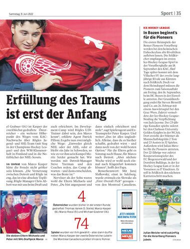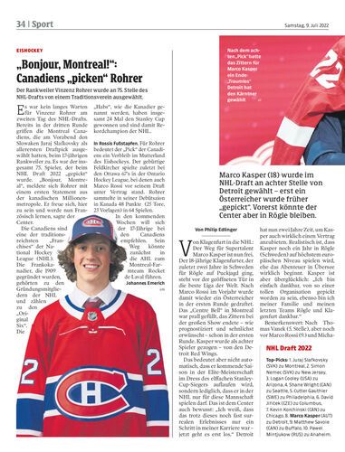 Marco Kasper (18) wurde im NHL-Draft an achter Stelle von Detroit gewählt – erst ein Österreicher wurde früher „gepickt“. Vorerst könnte der Center aber in Rögle bleiben.