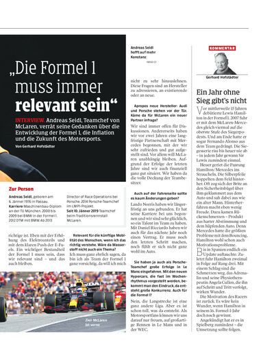 Andreas Seidl, Teamchef von McLaren, verrät seine Gedanken über die Entwicklung der Formel 1, die Inflation und die Zukunft des Motorsports. Von Gerhard Hofstädter