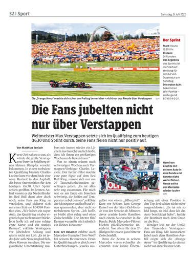 Weltmeister Max Verstappen setzte sich im Qualifying zum heutigen (16.30 Uhr) Sprint durch. Seine Fans fielen nicht nur positiv auf.