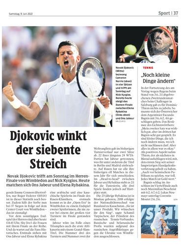 Novak Djokovic trifft am Sonntag im Herren-Finale von Wimbledon auf Nick Kyrgios. Heute matchen sich Ons Jabeur und Elena Rybakina.