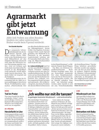 AMA ließ Proben aus allen Bundesländern im Labor untersuchen: Bisher wurde kein Fipronil entdeckt.