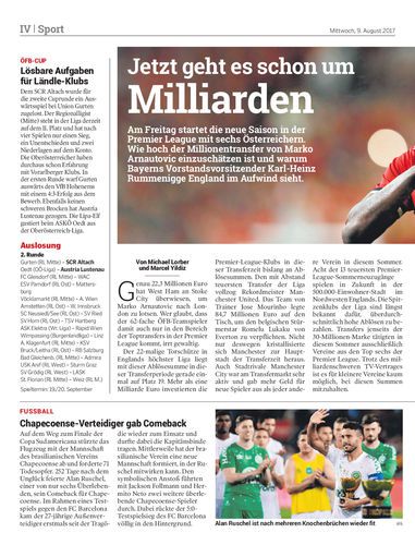 Am Freitag startet die neue Saison in der Premier League mit sechs Österreichern. Wie hoch der Millionentransfer von Marko Arnautovic einzuschätzen ist und warum Bayerns Vorstandsvorsitzender Karl-Heinz Rummenigge England im Aufwind sieht.