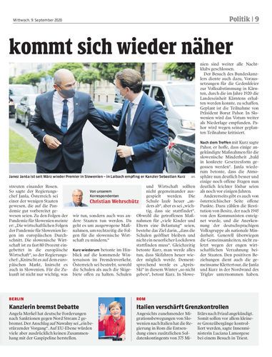 In der Coronakrise waren Laibach und Wien oft nicht im Gleichklang. Beim Besuch von Kurz bei Janša schaffte man Voraussetzung für die Feier zu 100 Jahren Kärnten-Votum.