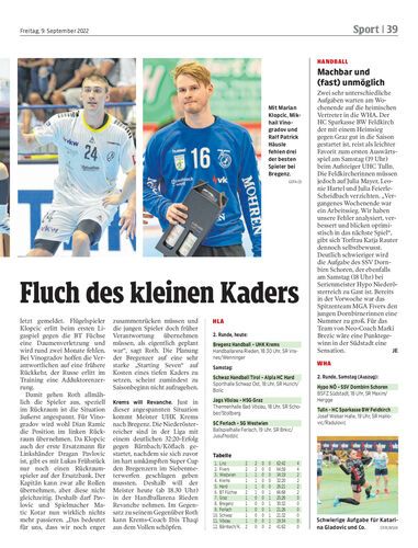 Vor dem ersten Heimspiel der Saison gegen Meister Krems plagen Bregenz Handball Personalsorgen. Im Rückraum gibt es nur noch einen Ersatzspieler.