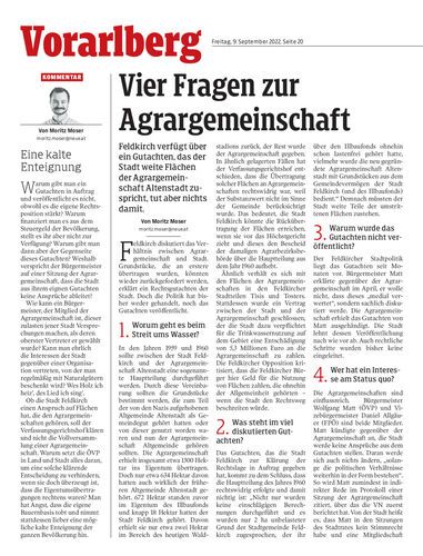 Feldkirch verfügt über ein Gutachten, das der Stadt weite Flächen der Agrargemeinschaft Altenstadt zuspricht, tut aber nichts damit.
