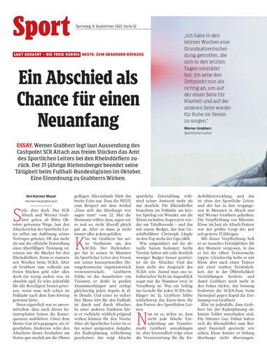 Essay. Werner Grabherr legt laut Aussendung des Cashpoint SCR Altach aus freien Stücken das Amt des Sportlichen Leiters bei den Rheindörflern zurück. Der 37-jährige Riefensberger beendet seine Tätigkeit beim Fußball-Bundesligisten im Oktober. Eine Einordnung zu Grabherrs Wirken.