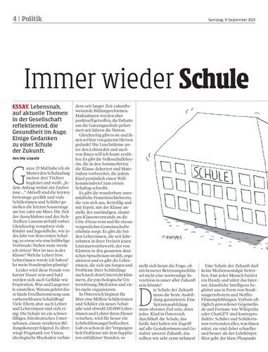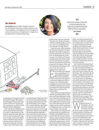 ESSAY. Lebensnah, auf aktuelle Themen in der Gesellschaft reflektierend, die Gesundheit im Auge. Einige Gedanken zu einer Schule der Zukunft. Von Ute Liepold