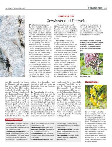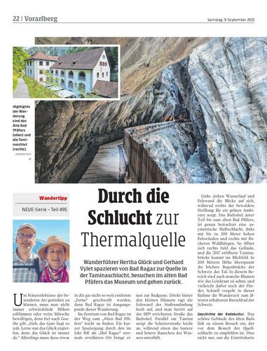 Wanderführer Hertha Glück und Gerhard Vylet spazieren von Bad Ragaz zur Quelle in der Taminaschlucht, besuchen im alten Bad Pfäfers das Museum und gehen zurück.