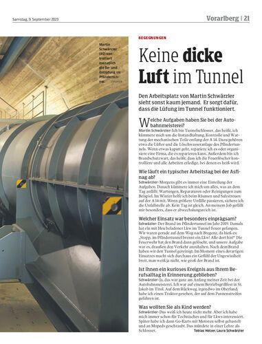 Den Arbeitsplatz von Martin Schwärzler sieht sonst kaum jemand. Er sorgt dafür, dass die Lüfung im Tunnel funktioniert.