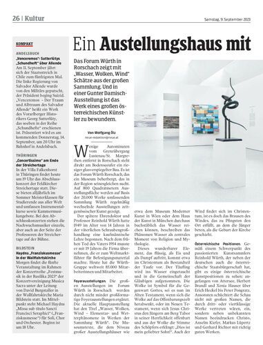 Das Forum Würth in Rorschach zeigt mit „Wasser, Wolken, Wind“ Schätze aus der großen Sammlung. Und in einer Gunter Damisch-Ausstellung ist das Werk eines großen österreichischen Künstler zu bewundern.