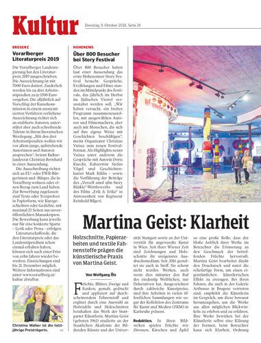 Holzschnitte, Papierarbeiten und textile Fahnenstoffe prägen die künstlerische Praxis von Martina Geist.