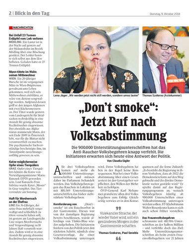Die 900.000 Unterstützungsunterschriften hat das Anti-Rauchen-Volksbegehren knapp verfehlt. Die Initiatoren erwarten sich heute eine Antwort der Politik. Von Claudia Gigler