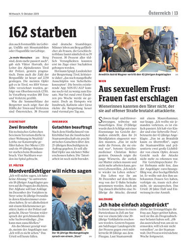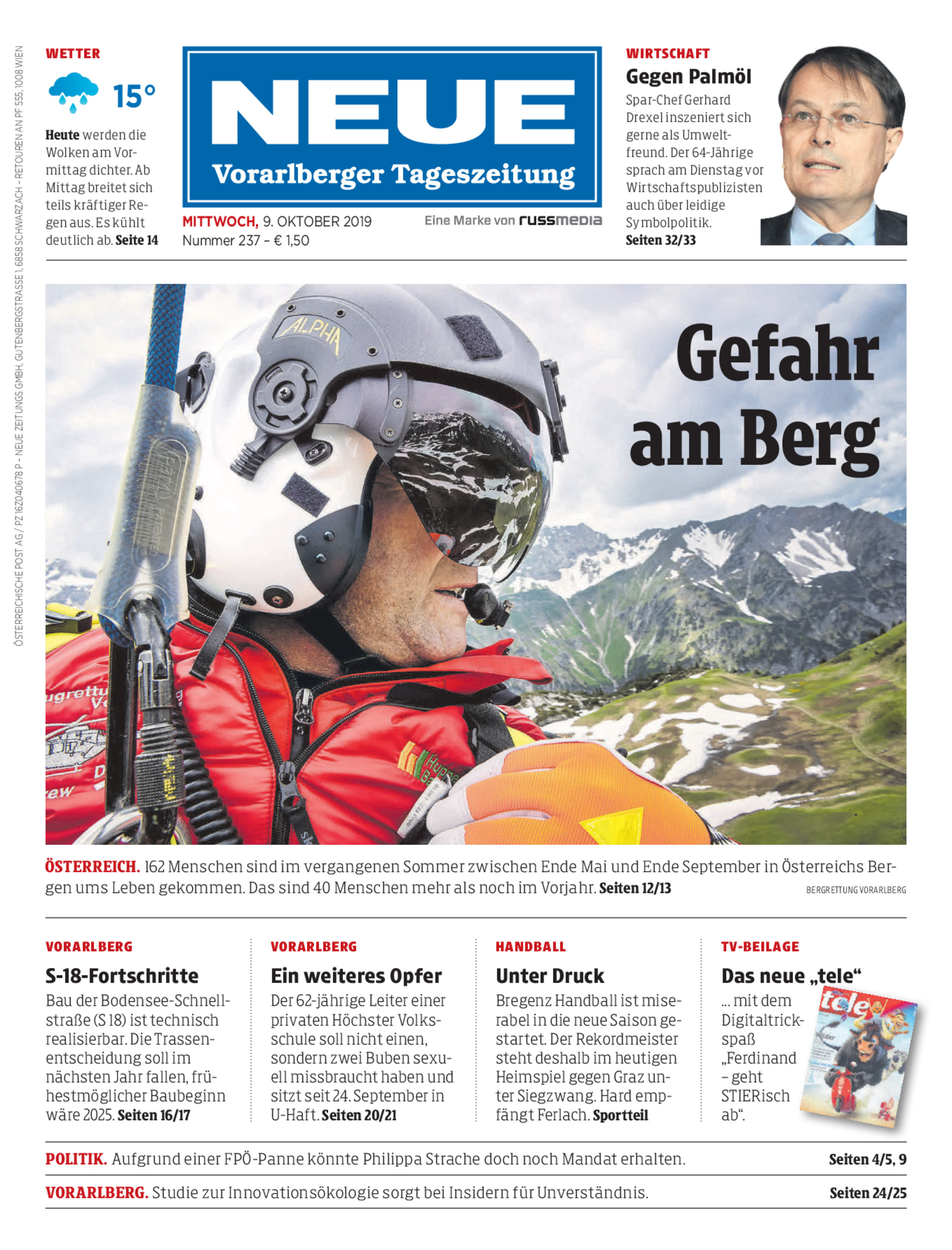 Österreich. 162 Menschen sind im vergangenen Sommer zwischen Ende Mai und Ende September in Österreichs Bergen ums Leben gekommen. Das sind 40 Menschen mehr als noch im Vorjahr. Seiten 12/13 Bergrettung Vorarlberg