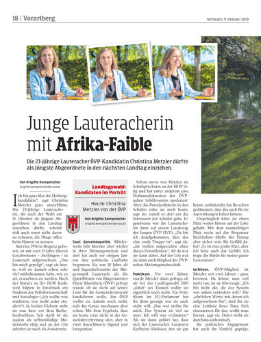 Die 23-jährige Lauteracher ÖVP-Kandidatin Christina Metzler dürfte als jüngste Abgeordnete in den nächsten Landtag einziehen.