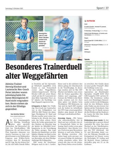 Admira-Trainer Herwig Klocker und Lauterachs Neo-Coach Peter Jakubec waren jahrelang beim früheren Westligisten FC Hard nicht wegzudenken. Heute stehen sie sich in der Eliteliga gegenüber.