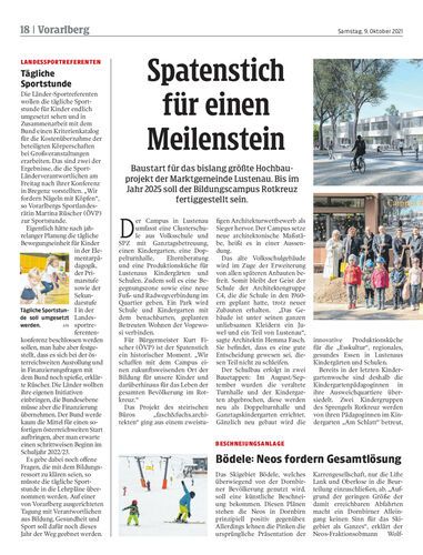 Baustart für das bislang größte Hochbauprojekt der Marktgemeinde Lustenau. Bis im Jahr 2025 soll der Bildungscampus Rotkreuz fertiggestellt sein.