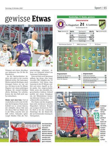 Spielbericht. Austria Lustenau verliert vor 3868 Zuschauern mit 1:2 bei Austria Klagenfurt und ist damit seit dem Derbyerfolg in Altach und sieben Pflichtspielen ohne Sieg. In der Defensive fehlte die Stabilität, in der Offensive die Ideen.
