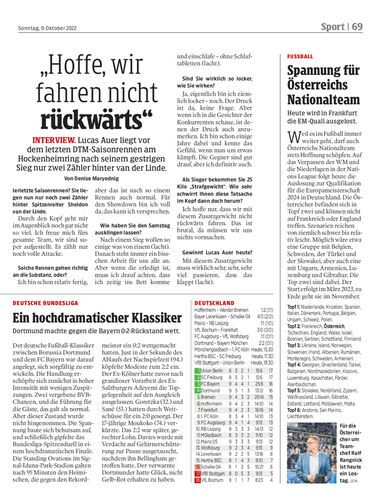 Lucas Auer liegt vor dem letzten DTM-Saisonrennen am Hockenheimring nach seinem gestrigen Sieg nur zwei Zähler hinter van der Linde. Von Denise Maryodnig
