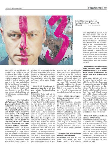 Interview. Der deutsche Komiker Michael Mittermeier spielt am Dienstag um 20 Uhr in Bregenz auf der Werkstattbühne sein neues Programm #13 – noch sind Restkarten verfügbar. Im offenherzigen Interview spricht Mittermeier darüber, wie er nach dem Tod der Queen sein Programm abgeändert hat, seiner Einstellung zur Kirche und warum man über Putin lachen muss.