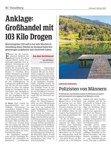 In Hohenems und Dornbirn hatten es Polizisten am gestrigen Samstag mit zwei aggressiven Männern zu tun.