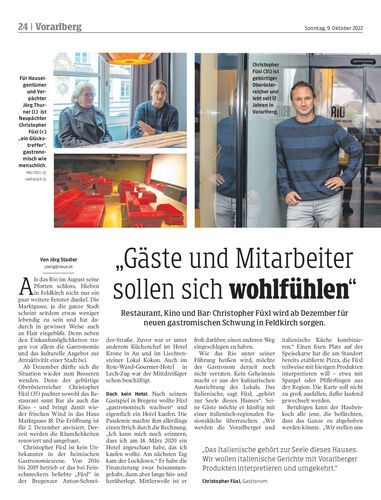 Restaurant, Kino und Bar: Christopher Füxl wird ab Dezember für neuen gastromischen Schwung in Feldkirch sorgen.