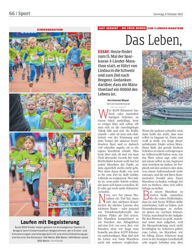 Essay. Heute findet zum 15. Mal der Sparkasse-3-Länder-Marathon statt, er führt von Lindau in die Schweiz und zum Ziel nach Bregenz. Gedanken darüber, dass ein Marathonlauf ein Abbild des Lebens ist.