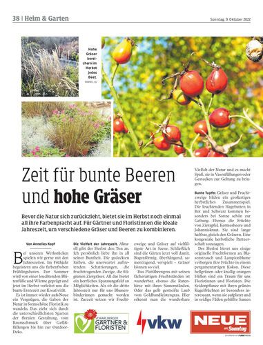 Bevor die Natur sich zurückzieht, bietet sie im Herbst noch einmal all ihre Farbenpracht auf. Für Gärtner und Floristinnen die ideale Jahreszeit, um verschiedene Gräser und Beeren zu kombinieren.
