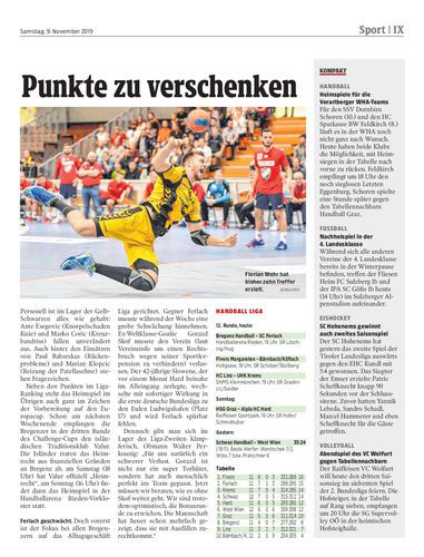 Im Kampf um die Bonusrunde zählen für Bregenz HB nur noch Punkte. Heute (19) soll der Zweitem Ferlach deren zwei abliefern.