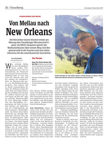 Der Historiker Günter Bischof erhält am Montag den Vorarlberger Wissenschaftspreis. Im NEUE-Gespräch spricht der Wahlamerikaner über seinen Weg vom Bregenzerwald in die Staaten und sein tiefes Interesse für die amerikanische Geschichte.