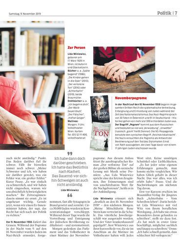 Heute wird weltweit der Novemberpogrome gedacht. Autorin Lida Winiewicz ist eine der letzten Zeitzeuginnen. Sie erinnert sich an ihr Aufwachsen zwischen Bombennächten im Nazi-Wien.