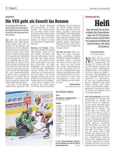 Im einzigen AHL-Spiel an diesem Wochenende haben die Feldkircher heute Abend (19.30 Uhr) die Bregenzerwälder zu Gast.