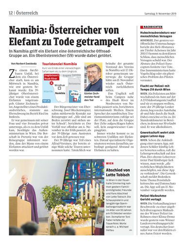 In Namibia griff ein Elefant eine österreichische Offroad-Gruppe an. Ein Oberösterreicher (59) wurde dabei getötet.