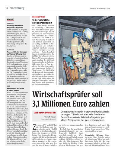 Gemeindeinformatik wurde von Buchhalterin betrogen. Täterin hat aber kein Geld mehr. Deshalb wurde der Wirtschaftsprüfer geklagt. Zivilprozess hat gestern begonnen.