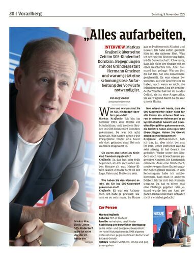 Interview. Markus Krajisnik über seine Zeit im SOS-Kinderdorf Dornbirn, Begegnungen mit der Gründergestalt Hermann Gmeiner und warum jetzt eine schonungslose Aufarbeitung der Vorwürfe notwendig ist.