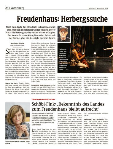 Nach dem Ende des Standorts in Lustenau fehlt dem mobilen Theaterzelt weiter ein geeigneter Platz. Die Herbergssuche verlief bisher erfolglos. Der Verein Caravan kämpft um den Erhalt seiner Bühne, aber ein Aus steht auch im Raum.