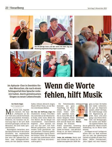 Im Aphasie-Chor in Dornbirn finden Menschen, die nach einem Schlaganfall ihre Sprache verloren haben, durch gemeinsames Singen zu neuer Lebensfreude.