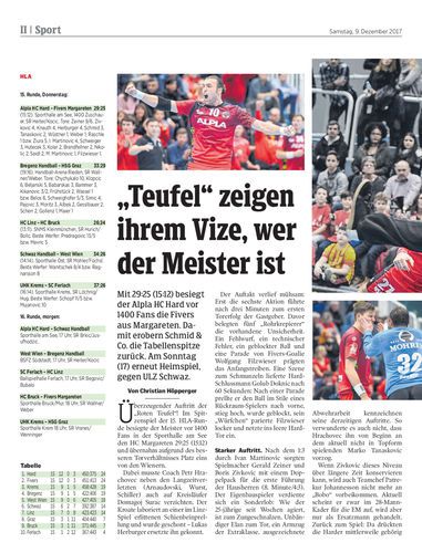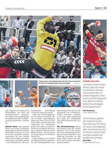 Mit 29:25 (15:12) besiegt der Alpla HC Hard vor 1400 Fans die Fivers aus Margareten. Damit erobern Schmid & Co. die Tabellenspitze zurück. Am Sonntag (17) erneut Heimspiel, gegen ULZ Schwaz.